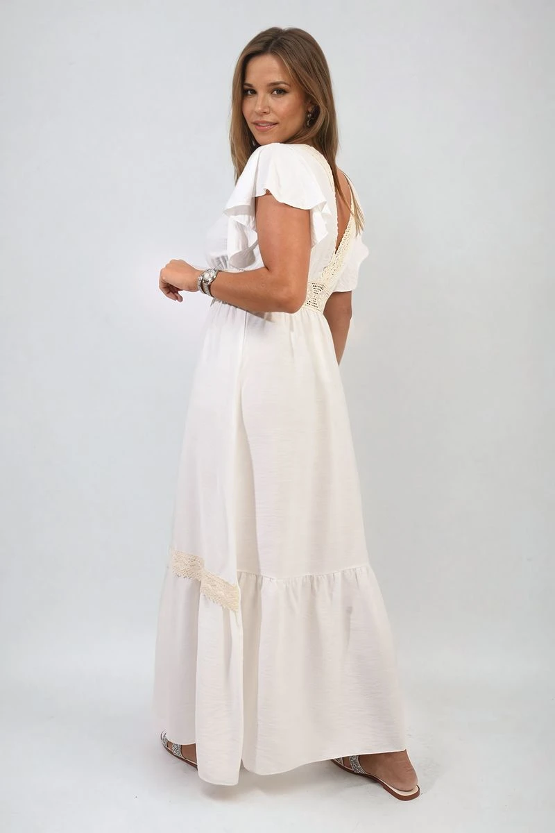 Alejandra V-neck Lace Trim Maxi Dress in White Description