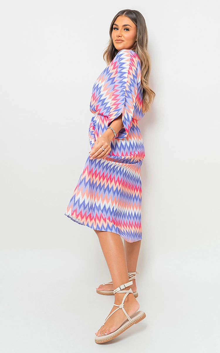 Introducing the Arianna Zigzag Print V Neck Twisted Front Midi Dress, a stunning and playful addition to your wardrobe! ????????