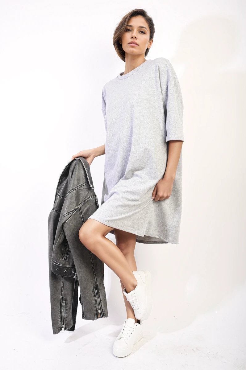 Melissa Oversized Shirt Dress in Grey Description